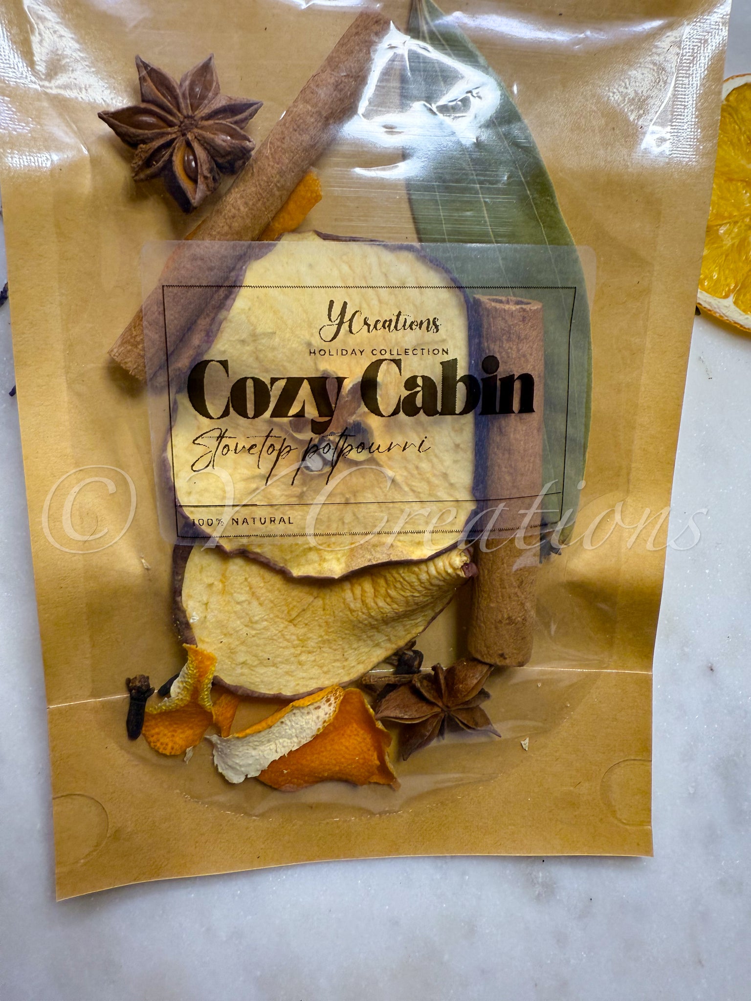 Give your house the aroma of the holidays with this woodsy christmas blend - includes - Cinnamon Sticks , dried apples, Orange Peel, Bay leaves , Star Anise