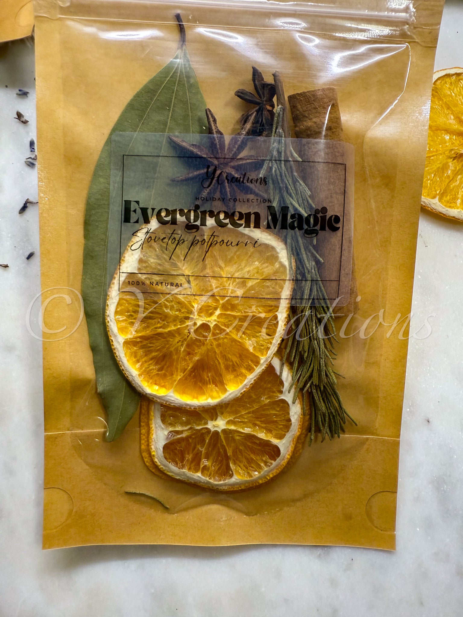 Includes: Dried Orange, Rosemary, Cinnamon, Bay Leaves and Star Anise